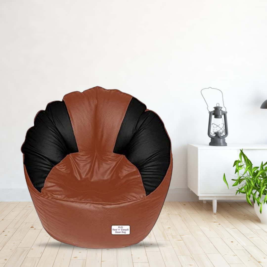 GUNJ Jumbo Sofa Mudhha Bean Bag Cover Without Beans (Tan & Black)